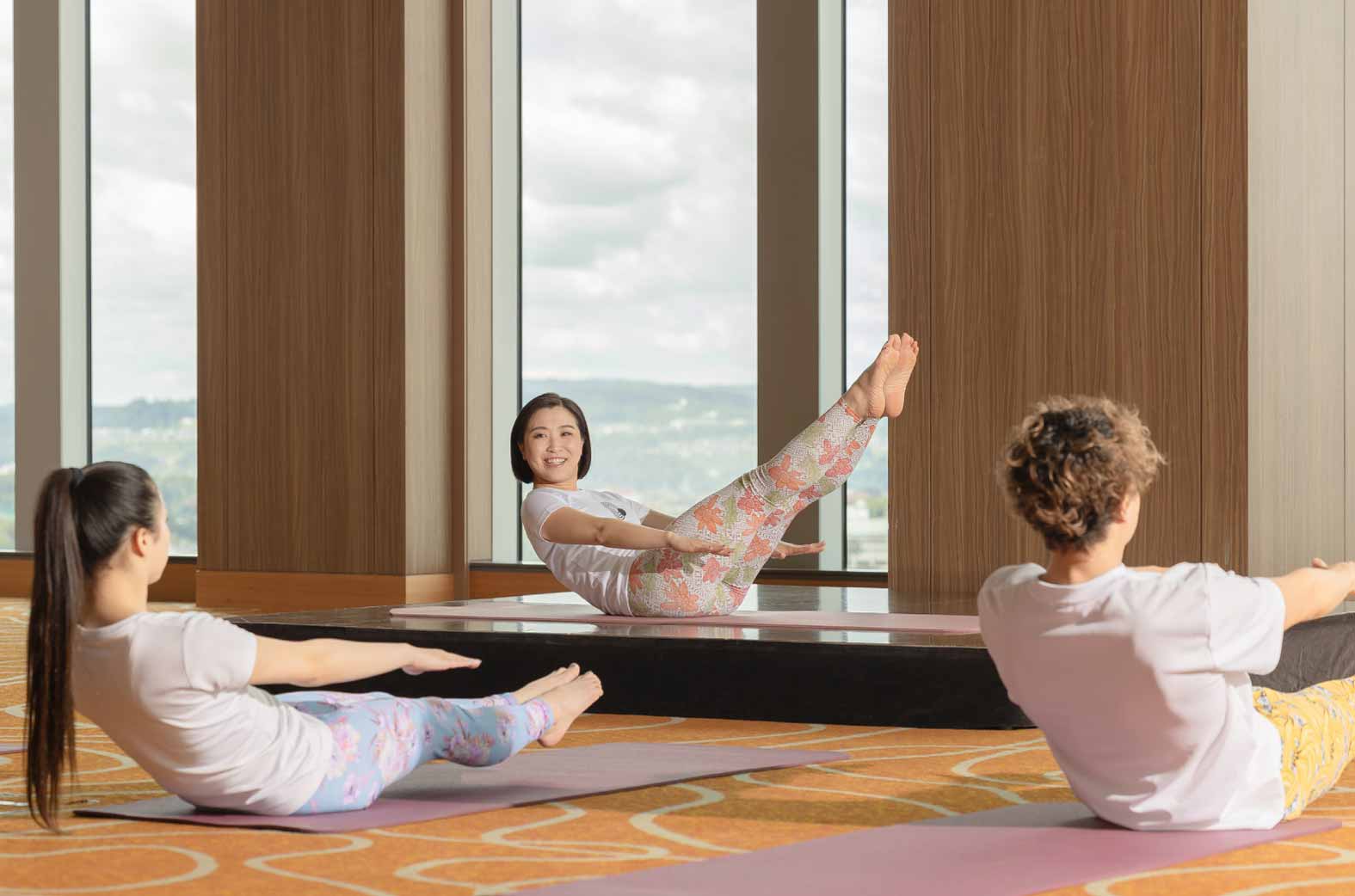 絶景空間「雅」で、仙台市内にて「Body Studio GRACE」を主宰している髙橋麻美氏を講師として迎え、ピラティスと空中ヨガ体験を開催。運動後は東北の春食材を使ったランチコースで心身を満たす、ウェルビーイングな一日を提供します。