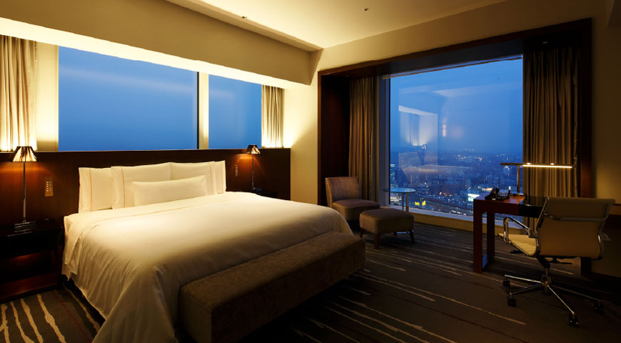 デラックスは、44㎡のゆとりある空間で洗練された雰囲気のなか、お寛ぎいただけます。ビジネスにもご利用いただけるワークデスクを備えており、無料の高速インターネットアクセスや42インチのフラットスクリーンテレビを完備。Westin Heavenly® Bed(ウェスティンヘブンリーベッド)をご用意しております。