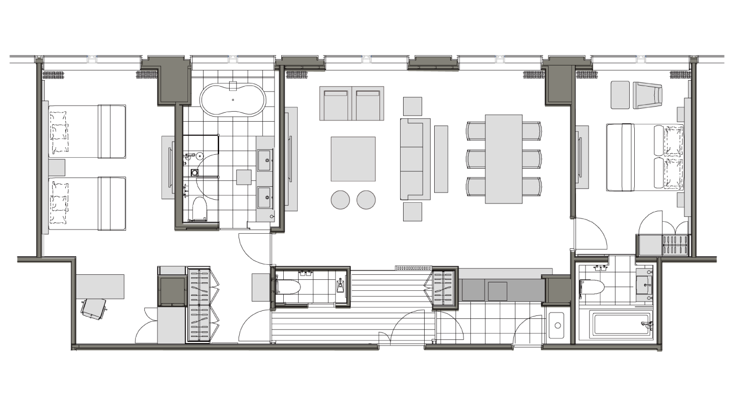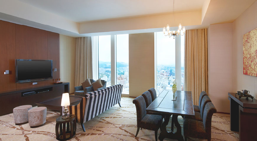 36階に位置する当ホテル最上級の客室です。大きく広がる眺めや、ボーズ社製ホームシアター付き55インチのフラットスクリーンテレビ、2つのベッドルームがご自宅のような快適性をお届けいたします。ホテル26階のウェスティン エグゼクティブ クラブ ラウンジのご利用のほか、無料の朝食ブッフェおよび無料の高速インターネットアクセスの特典がついております。